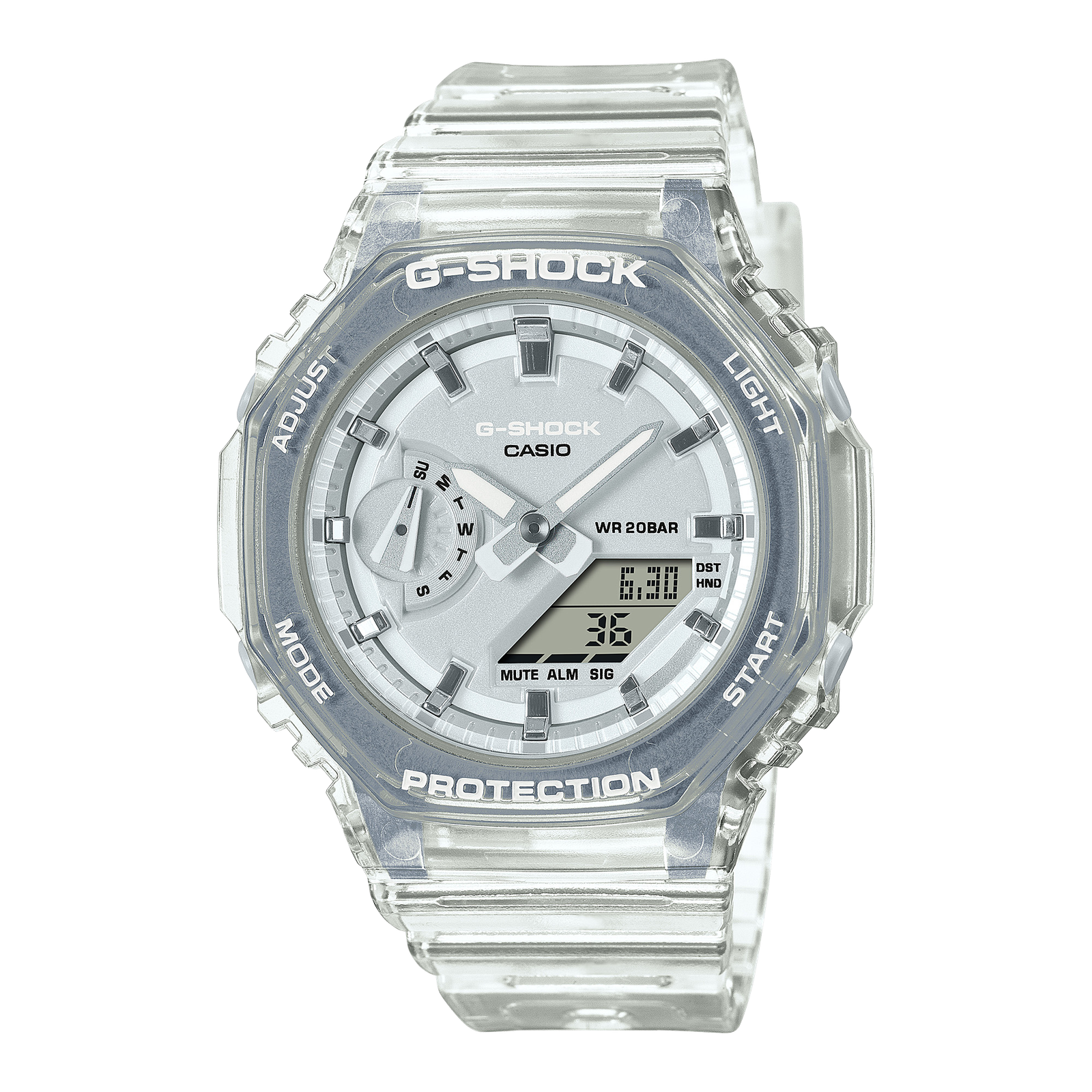 Offrez-vous un plaisir métallique apparent en optant pour la combinaison analogique-numérique GA-2100, toujours aussi populaire, dans un profil plus fin et plus compact. Des designs métalliques translucides dans un choix de couleurs pour des montres polyvalentes qui s’associent à toutes les tenues, toute l’année. Les marques d’index traitées avec une finition semi-mate par dépôt de vapeur donnent vie à l’aspect métallique apparent.